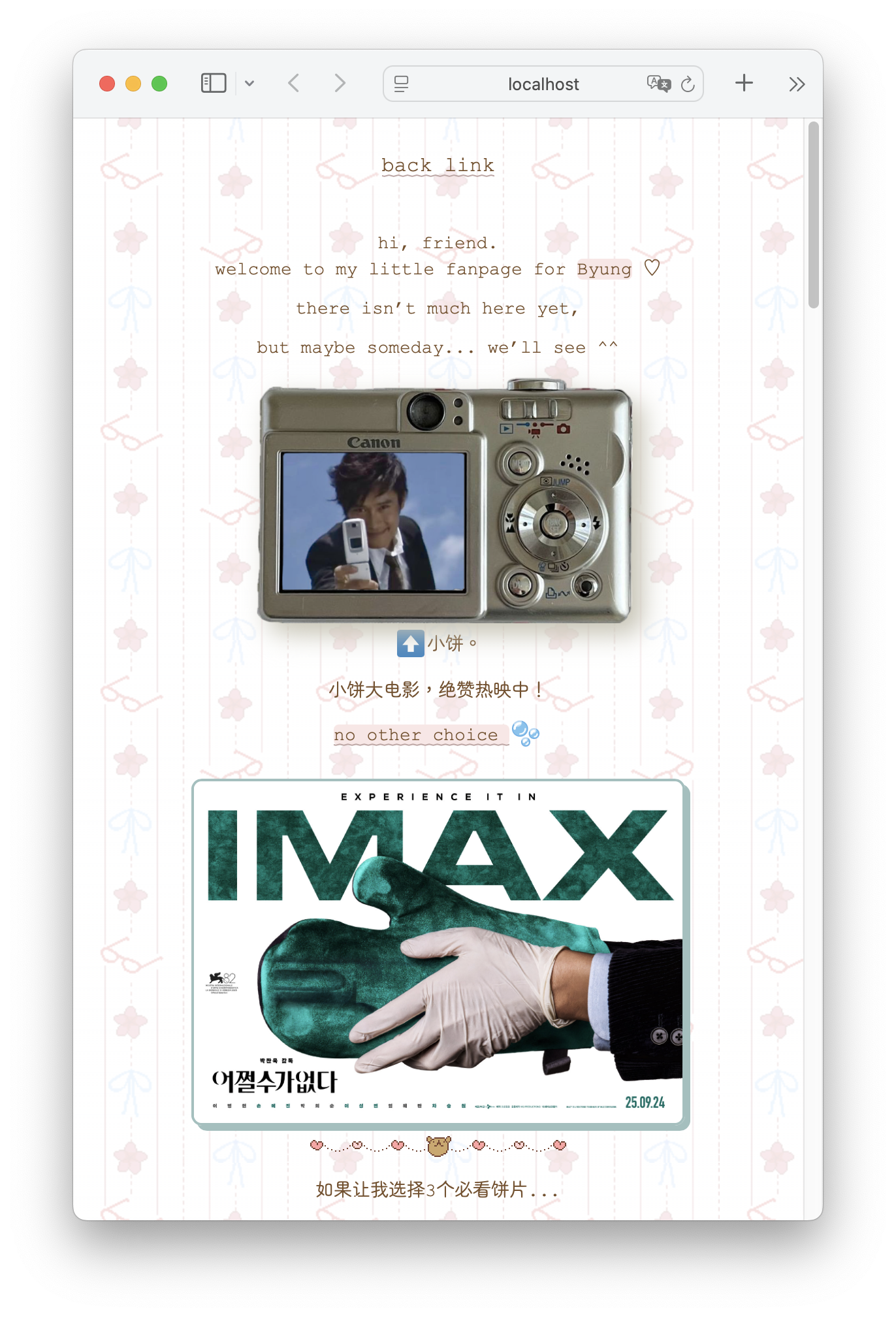 虽然是粗糙的网页,但是真挚的情和百分百的萌(?)这个页面完全是古法手搓HTML,之前有提到过我非常喜欢逛Neocities和Nekoweb上的风格各异、充满创意的网站,这次稍微自己写了一下才发觉这真的很困难……虽然最后呈现的效果很简单。